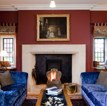 The Lounge at Ard na Sidhe offers a warm and welcoming space to unwind, with an open log fire, deep armchairs, and beautifully rustic interiors. Guests can enjoy afternoon tea by the fire, relax with a favourite drink from the well-stocked cabinet, or settle in after dinner in comfort. A piano and chess board add to the charm, inviting guests to enjoy gentle music on select evenings or pass the time with a quiet board game.