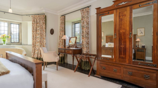 The Master Suite at Ard na Sidhe is exquisitely furnished to reflect the unique character and charm of this historic manor house. As the largest room in the property, the suite offers stunning views over the hotel’s extensive gardens and the serene waters of Caragh Lake. It features a generously sized ensuite bathroom complete with a classic-style bathtub and a separate shower, all appointed with luxurious amenities.